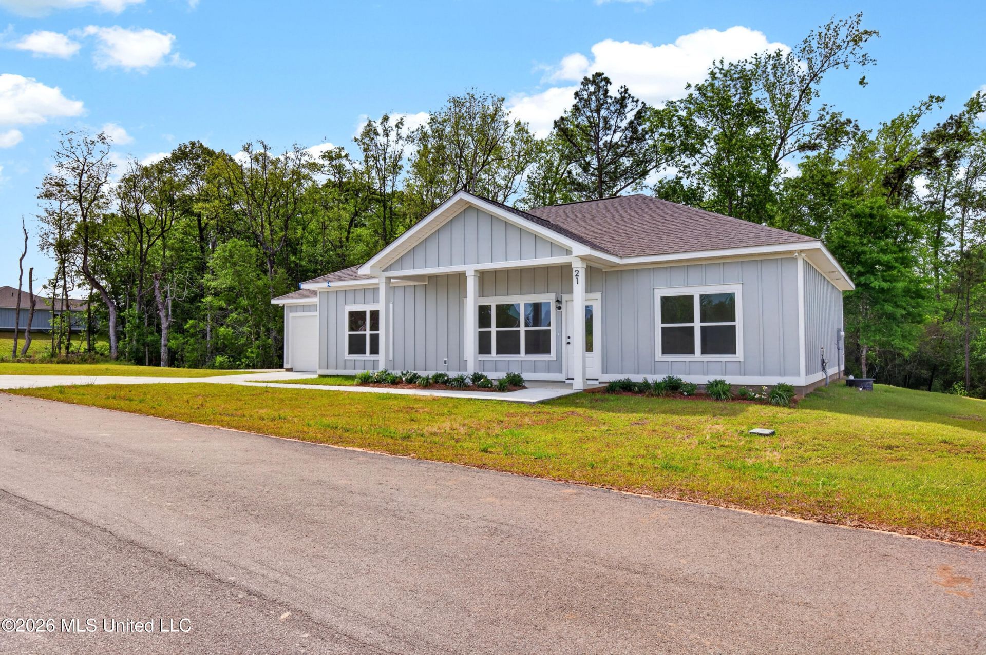 ***CONSTRUCTION COMPLETE*** - 3 BED, 3 BATH BEAUTY WITH 1728 SQUARE FEET OF GREAT SPACE! This newly built home offers the perfect blend of comfort & convenience with a well-designed split floor plan featuring 3 spacious bedrooms and 3 full baths. The open concept living, dining and kitchen areas create a welcoming atmosphere ideal for entertaining or relaxing with family. The large kitchen offers ample counter space with plenty of cabinet storage while each bedroom is thoughtfully placed for privacy and comfort. The master suite includes a generous walk-in closet and a private bath. A spacious two-car garage completes this gorgeous, well designed package. Located just minutes from Highway 49 and Highway 67, this home offers an easy commute to the entire Mississippi Gulf Coast - including Gulfport, Biloxi, Ocean Springs and even the Pascagoula/Moss Point Area! Call for your showing today! Contracts written by August 1st will get to pick their floor & wall colors!
